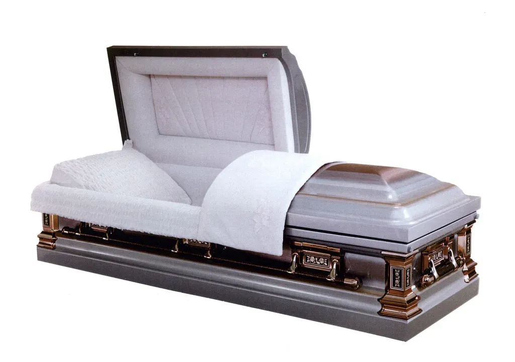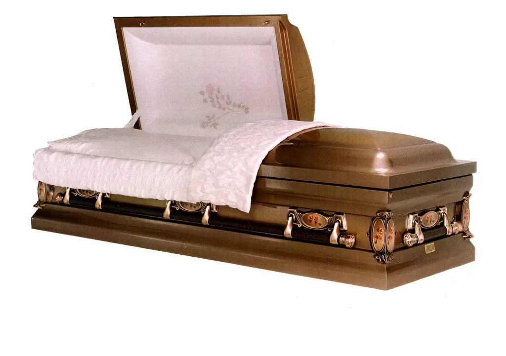 Copper or Bronze Caskets may be found in square-cornered, round-cornered or urn shaped designs. Rather than gauge, copper and bronze caskets are measured by weight. A 32-oz. copper or bronze casket means that the copper or bronze used weighed 32-oz. per square foot. There are also 48-oz. copper or bronze caskets.